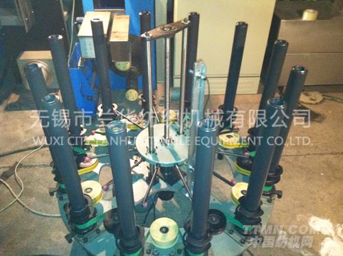 蘭華分絲機(jī)是光機(jī)電一體產(chǎn)品,是新一代化纖單絲生產(chǎn)的分絲設(shè)備。本機(jī)采用了分絲羅拉有效地消減了卷繞張力,繞絲的筒管可采用低廉的紙管也可用金屬筒。結(jié)構(gòu)上采用了圓形排部,12個(gè)繞絲筒管豎在圓形機(jī)座上,分絲點(diǎn)在圓點(diǎn)上方,使得分出的絲角度和張力都一致。在張力控制方面,采用的是秤桿式調(diào)節(jié)分絲張力,在羅拉和收卷方面采用PLC與伺服電機(jī)組合控制。本機(jī)顯著提高了產(chǎn)品的品質(zhì)與使用性。生產(chǎn)出產(chǎn)品單絲在紡造時(shí)不易斷頭,無(wú)筒腳絲,布面平整,絲餅利用率100%。
