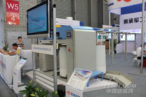 邢總:我們今年展出的產品還是我們公司主要的拳頭產品,也是我們的傳統(tǒng)產品。特別是精梳機,我們在去年的基礎上,響應了我們國家包括行業(yè)提出來的節(jié)能減排的一些大的技術要求,所以在今年這個展會上我們這個精梳機299B,特別在節(jié)能減耗這方面做了很大的工作。首先一點我們這個精梳機改變了傳動的原理和電機技術,設備原本的實際運行功率為4.7千瓦,但實際在今年一年的運行當中,在有關廠里面我們做了有關實驗,相關數據顯示,目前實際功率已達到3000瓦。這樣就使企業(yè)尤其是在一些電力比較緊缺的地方,一年的用電費用大概能節(jié)約10萬塊錢,如果在一些不發(fā)達地區(qū)可節(jié)約5到6萬塊錢。這是第一個特點,第二個特點是我們改進了機械的一些原理,把精梳機調節(jié)落棉刻度已經優(yōu)化到精確至毫米,在這個調整之后,給使用我們設備的廠家?guī)?%到8%節(jié)棉量。這個也是我們推出的精梳機在質量和性能比較穩(wěn)定的前提下又增加的兩大特性。另一個為了配合精梳機整個生產工藝,我們看到國外先進公司利達公司推出了一個運棉的系統(tǒng),然后我們再結合了紗廠用工比較緊張,勞動強度比較大的特點,我們又新研制了一個新品叫Y23自動運棉系統(tǒng),這個系統(tǒng)已經我們攻克了。目前能達到的效果是一套精梳機配這樣一套Y23的運棉系統(tǒng)。在廠里的使用情況是減少了用工,而且減少了紡織女工的勞動強度,也節(jié)約了廠里的一些能源,同時節(jié)約了用地。從Y23初步的研制和到廠里的使用情況來看, Y23棉卷自動接頭系統(tǒng)是我們廠下一步需要攻克的課題。相信在明年展會上,我們能把這個問題解決掉,將產品帶來展會展示給大家。