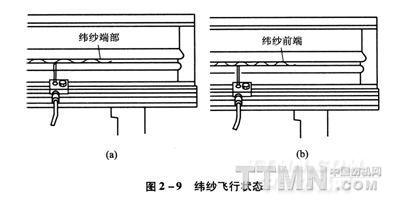 最理想的緯紗飛行姿勢如圖2—9(a),大的“波形”緯紗在筘槽中心偏上方飛行的狀態是最理想的。