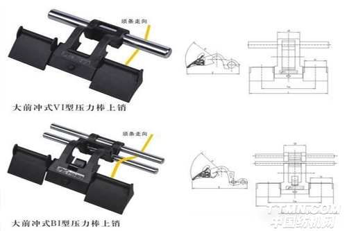 據悉,大前沖式壓力棒上銷在前鉗口前沿設計上加大前沖量,使得前牽伸區摩擦力界得到有效擴展,同時“彈性”特點更加突出,膠輥膠圈中凹現象明顯改善,纖維變速更加集中而靠前,產品質量明顯提高。另外在后區設置摩擦力界,不僅可有效控制須條的運行狀態,而且可大幅提升細紗總牽伸倍數。特別是對新上項目的用戶,作用尤其顯著,可減少前紡設備的配置,既省工、又節能,節省投資成本。