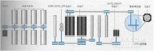 b.牽伸羅拉由數控伺服電機驅動,快速設定輸出速度和棉條定量,一旦適用于某種原料的理想設定確定下來,就可以儲存,當再次加工這種原料時,即可隨時調用,簡化了操作,并提高了質量。