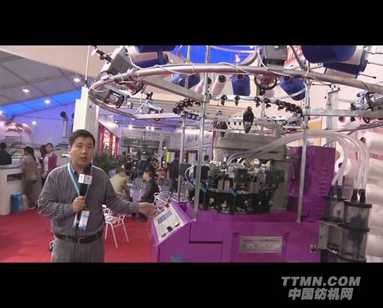 凹凸精機的業務經理朱安在為中國紡機網廣大網友介紹他身后的這臺單面針織機