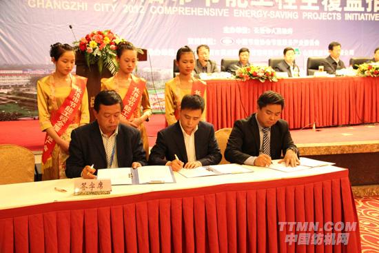 英威騰能源管理有限公司總經理姚建國(右一)同用能企業簽訂合作協議