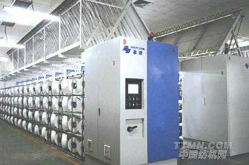 高速彈力絲機(jī)又稱為假捻絲機(jī),如圖1所示,普通的滌綸長絲在假捻機(jī)上加捻、退捻,不斷的上前行,最后經(jīng)過一定溫度的定型,把絲固定下來,這類假捻絲保持了一定的捻度,保有了卷曲伸縮的彈性,織成的綢緞的絲條有一定花紋,完全可以和真絲雙縐媲美,其在色牢度等方面都要優(yōu)于真絲產(chǎn)品,普通的滌綸長絲經(jīng)過假捻機(jī)生產(chǎn),不但進(jìn)入了高檔產(chǎn)品系列,每米銷售價可以提高30%以上,提升了產(chǎn)品的附加值,正因為如此,自1971年國際紡織機(jī)械展覽會上展出摩擦盤假捻器后,高速彈力絲機(jī)在生產(chǎn)速度、適紡品種、數(shù)量及自動化方面已經(jīng)有了不同尋常的發(fā)展。