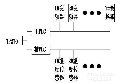 為保證整套系統(tǒng)的安全運行,7臺變頻器的故障輸出端全部串聯(lián)后再與其它儀器的故障輸出串聯(lián),當(dāng)設(shè)備中發(fā)生任何故障時,所有變頻器均自由停機(jī),同時在觸摸屏上顯示具體故障信息。