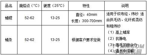 下面,小編就來逐一為大家來介紹一下蠟環、蠟輥、蠟條及FXR-WAX等紡織漿料的技術信息。