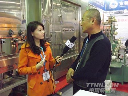 (圖為中國紡機網(wǎng)記者在采訪東莞盈隆機械的黃總 中國紡機網(wǎng)(TTMN.COM)攝)