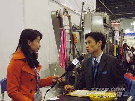 (圖為多普森的茍經(jīng)理在接受中國紡機網(wǎng)記者的采訪 中國紡機網(wǎng)(TTMN.COM)攝)