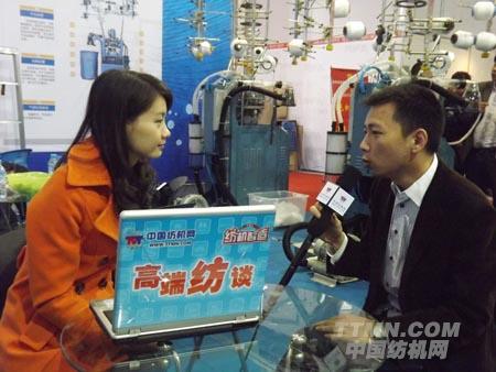 圖為紡機網記者在采訪紹興禾潤機械公司負責人