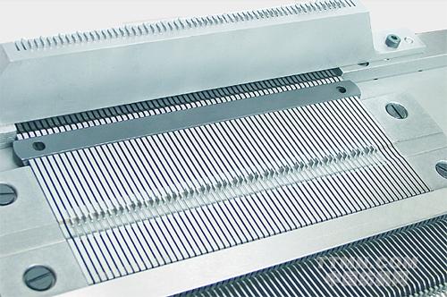 針床方面是以計算機精密銑床進行加工, 保證針槽均勻; 加上針床采用嵌入式插片組合而成, 如插片損壞, 可以方便地進行更換。 采用沉降片織系統, 使編織出的手套具有伸縮性及彈性, 既緊貼手掌而又柔軟舒適。