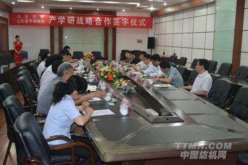 5月10日上午,山東康平納集團有限公司與山東大學產學研戰略合作簽字儀式在康平納集團舉行。山東大學校長助理賈磊、學術研究部部長趙顯等學校領導、泰安市市政府副市長徐恩虎等市區領導、山東康平納集團公司董事長陳隊范及集團高層領導出席簽字儀式。