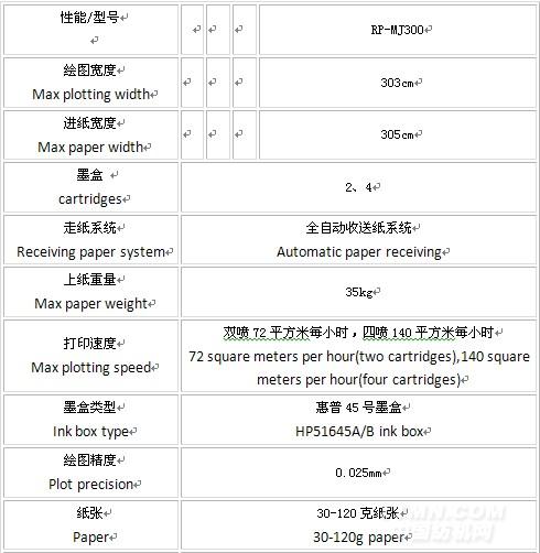 * 使用惠普HP45號墨盒,更換方便,價格便宜,無須過多保養,打印清晰,并與大多HP-GL文件兼容。