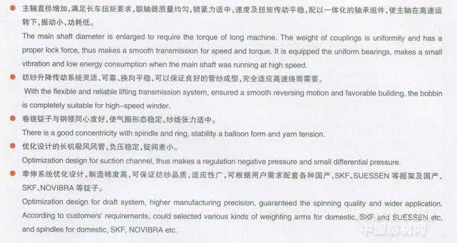 ② 采用臺灣三明鋼帶式集體落紗裝置,拔管率達(dá) 99%以上;