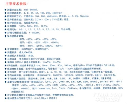 本均勻度儀是一集數據、計算機信號處理于一體的高科技產品,該儀器可迅速測定條粗的各項不均指標值,提示不良工藝,儀器操作簡單,功能齊全、工作界面友好,并具有檢測、保存、打印、查詢多項功能,它波譜圖光滑、無虛假波峰,機械波、牽伸波特征好,易于識別。波譜圖各通道的波長可直接由光標引導讀取數值,可滾動顯示采樣曲線,便于全面研究分析紗線粗細變化的特點。由離散圖可獲得試樣粗細變化偏移的差異。每一樣檢測結果可保存到數據庫中。在任何時候都可對歷史數據實現條件組合查詢,CV值排序、波譜圖顯示,成組打印等操作。