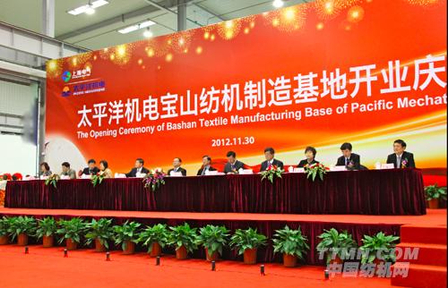 【TTMN訊 涵子】2012年11月30日上午,太平洋機(jī)電(集團(tuán))有限公司在上海寶山區(qū)隆重舉行太平洋機(jī)電寶山紡機(jī)制造基地開業(yè)慶典。中國(guó)紡織工業(yè)聯(lián)合會(huì)副會(huì)長(zhǎng)兼秘書長(zhǎng)高勇;中國(guó)紡織機(jī)械器材工業(yè)協(xié)會(huì)理事長(zhǎng)王樹田;中國(guó)棉紡織行業(yè)協(xié)會(huì)會(huì)長(zhǎng)朱北娜;中國(guó)化學(xué)纖維工業(yè)協(xié)會(huì)會(huì)長(zhǎng)端小平;上海寶山區(qū)副區(qū)長(zhǎng)秦文波;上海電氣(集團(tuán))總公司黨委副書記李健勁、工會(huì)主席朱斌;上海市政協(xié)原副主席黃關(guān)從;太平洋機(jī)電集團(tuán)總裁、黨委副書記葉富才,黨委書記、副總裁杜松楊等領(lǐng)導(dǎo);國(guó)內(nèi)外近150多家用戶代表;以及其他領(lǐng)導(dǎo)和嘉賓共200余人出席。太平洋機(jī)電集團(tuán)黨委書記、副總裁杜松楊主持了開業(yè)慶典。