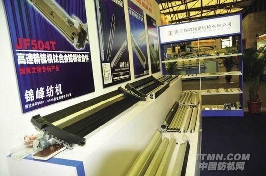 在此次展會上,浙江錦峰紡織機械有限公司的參展效果頗佳。其最新產品GFB-7QⅢ系列梳棉機雙聯固定分梳板及棉網清潔器可減少22根回轉蓋板,在同樣蓋板速度的情況下,清潔周期可縮短25%,其棉網清潔器除塵刀隔距和吸口大小均可調節,切雙聯蓋板使用性能更好,配置費用更省,而后3固定蓋板部件板塊設計,維修方便高效,實現了同樣的產量,質量更高;同樣的質量,產量可提高20~40%。