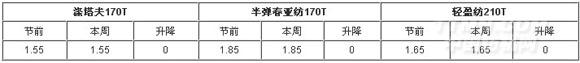 首先介紹一下:一周里料常規品種價格走勢對比表 元/米