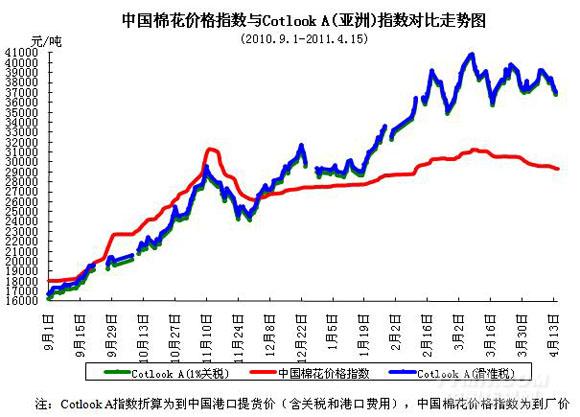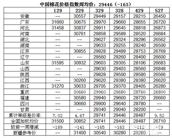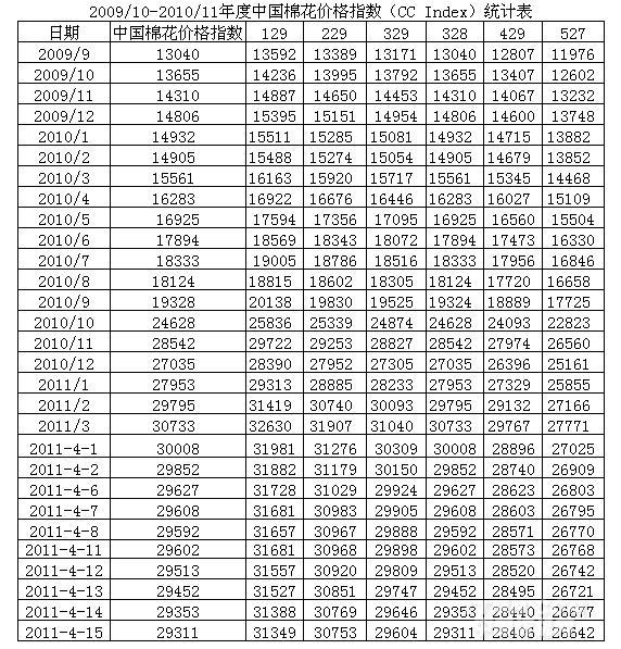 上周(4.11-4.15),紡織行業(yè)低迷,南半球新花上市銷售,國(guó)際電子盤走低,受其影響國(guó)內(nèi)電子盤震蕩下行,皮棉現(xiàn)貨報(bào)價(jià)繼續(xù)下調(diào),紡織廠毫無采購(gòu)熱情,現(xiàn)貨市場(chǎng)難以動(dòng)銷。越來越多的中小型紡織廠停產(chǎn)或減產(chǎn),大廠減少棉花使用量。各地春播工作陸續(xù)展開,由于近兩天全國(guó)氣溫回升明顯,新疆地區(qū)播種速度加快;全國(guó)其他直播棉區(qū)或是制缽棉區(qū)播種也陸續(xù)展開。周末央行年內(nèi)第四次上調(diào)存款準(zhǔn)備金率,預(yù)計(jì)市場(chǎng)將凍結(jié)銀行資金3600多億元。當(dāng)周中國(guó)棉花價(jià)格指數(shù)(CC Index328)周均價(jià)29446元/噸,較前周跌163元;229級(jí)30852元/噸,跌141元;527級(jí)26710元/噸,跌79元。
