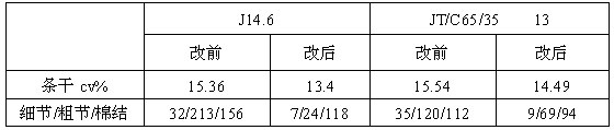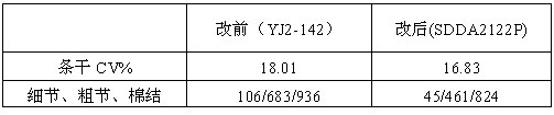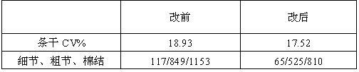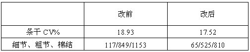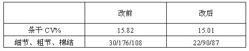 以上數(shù)據(jù)表明,改后比改前條干CV%值降低1%,細節(jié)、粗節(jié)、棉結(jié)都有較大程度降低。