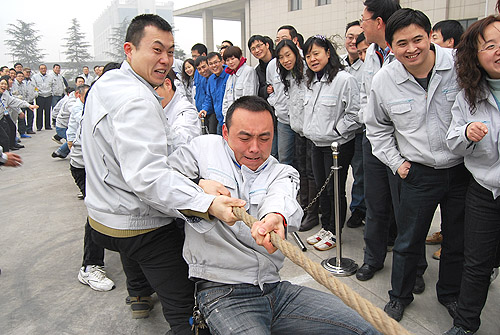 為慶祝農歷壬辰年新春佳節的來臨,2012年1月18日下午,紡電公司在公司園區內開展了“賀新年迎春運動會”。紡電公司9個分會、14個部門的200多名員工參加了運動會。此次運動會設置了“拔河、集體木屐、跳繩、頂氣球”四個項目。各分會和各參賽單位都認真對待,積極組織訓練,各行政單位也給予全力支持。運動會本著“友誼第一、比賽第二”的原則,賽場上隊員全力以赴、斗志昂揚,比賽緊張激烈、精彩紛呈,展現了紡電員工的活力和激情。經過激烈的角逐,紡研所分會獲得集體木屐、跳繩、頂氣球三項總分第一;質管部分會和紡電制造部分會并列第二名。拔河比賽前兩名分別是:紡研所分會和紡電制造部分會。通過比賽,既增強了員工的體質、愉悅了身心、鍛煉了意志,也促進了員工間的了解與交流,增進了友誼,比出了風格,賽出了水平。