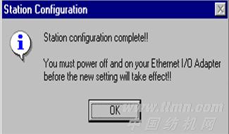 (4)更新IP地址。SC-501/DE在STOP模式下,通過 【Update Station】按鈕,把修改后的配置參數寫入到SC-501/DE。當出現右圖提示后則參數寫入成功。