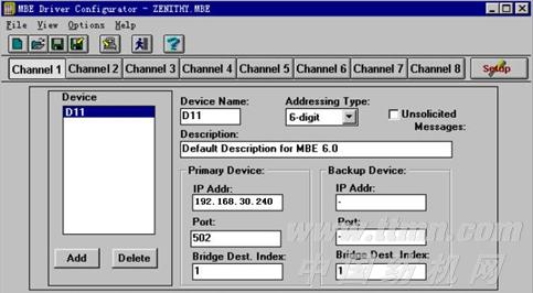 在IFIX的I/O設置中,填入上面配置的地址,192.168.30.240(以Ipconfig.exe讀取的IP為準),即為SC-501/DE的IP地址,PORT口缺省為502。