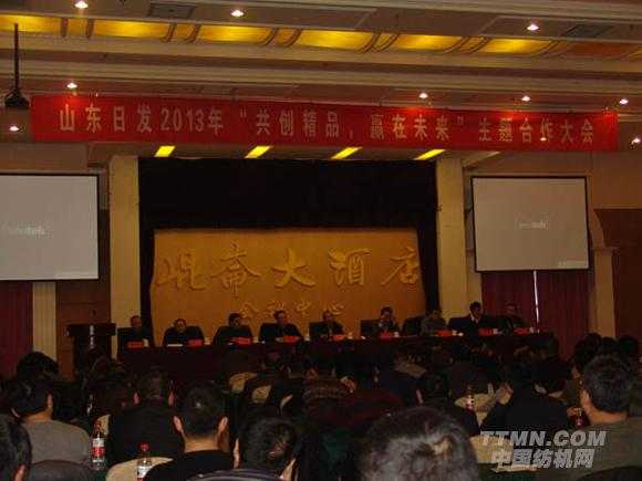 1月18日,山東日發2013年“共創精品,贏在未來”主題合作大會在昆侖大酒店順利召開。公司相關領導、特約嘉賓中國紡織工業聯合會劉家強處長、聊城開發區管委會呂廣華主任及來自全國各地的供應商代表出席會議。