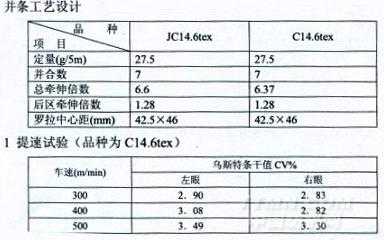 紡紗品種:JC14.6tex和C14.6tex
