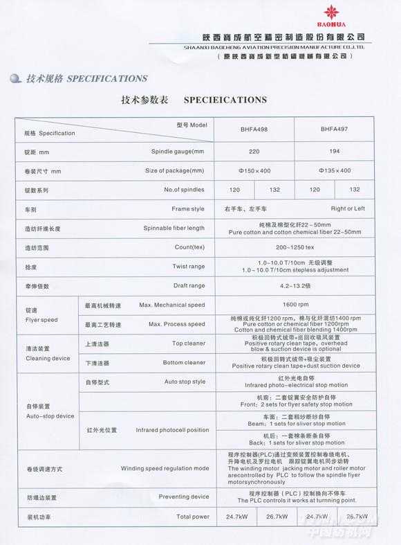 寶成BHFA498、BHFA497型粗紗機(jī)