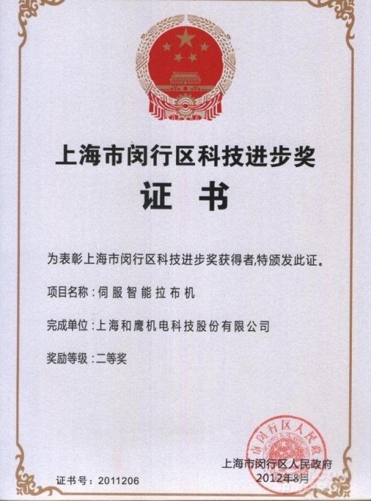 和鷹伺服智能鋪布機喜獲閔行區科技進步二等獎