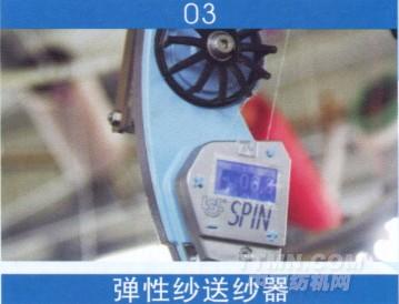 3.彈性紗線送紗器:不論編織速度快慢,織物密度大小,都可根據(jù)編織要求,通過控制保證織物始終以恒定的張力送紗,又可自動調(diào)節(jié)送紗張力大小,按織物所需的相應(yīng)張力送紗,從而保證織物每個部位的彈性要求。