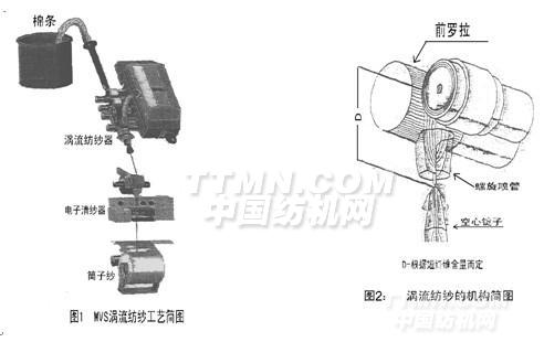 MVS渦流紡紗機是在噴氣紡的基礎上發展起來的,MVS與MJS的區別是MVS應用單一噴嘴技術,兩種體系生產的紗線結構完全不同,MVS紗屬于真拈結構。MJS紗屬于包纏紡紗結構,因此,MVS紡紗技術是一個新的突破。渦流紡紗機主要在美國應用。一般生產針織、機織紗。