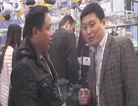 記者:觀眾朋友們大家好,中國紡機網記者紡友前線為你報道,我們現在在2013年義烏針織機械展現場第一館,所處的是葉曉針織機械公司的展臺,我身旁的是顧總,顧總你好!