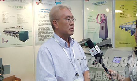 (圖一:中國紡機網(wǎng)記者采訪天佑紡機董事長 段肇祥)