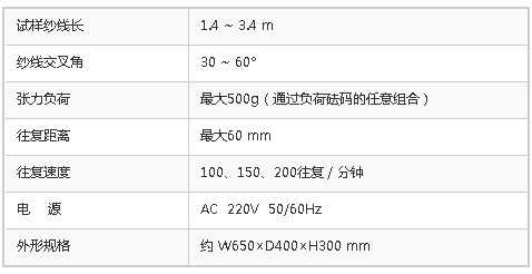 本機通過對紗線的交叉角,往復距離,往復速度,負荷砝碼的調節,可以進行各種各樣條件的試驗。