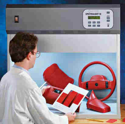 SpectraLightIII標準對色光源箱,擁有多項革新功能,用作產品推介、設計及色彩選擇上,使用SpectraLightIII,作為一個客觀的對色環境,能有助提升生產能力、降低成本及減少失誤。 專利技術——世界上最精確的模擬日光:SpectraLightIII擁有目前世界上最先進之模擬CIE標準日光光源技術,以鎢絲燈光,透過專利過濾鏡片,再通過散射片而復制出CIE日光光譜光源。 可調校技術——國際技術及標準協會認可:隨著燈管老化,電源不穩定等因素影響,即使相同型號的燈箱所發出的光源也可能出現飄移。Spectralight III可以通過再校正色溫及光亮度而使光源再標準化,從而遠至對色的一致性。故此,每個SpectralightIII均隨機附有一張國際技術及標準協會(NIST)認可證明書。 安全耐用:當操作人員忘記關閉日光光源時,SpectraLightIII獨有安全切換裝置便會即時啟動,使高耗電光源切換至低耗電的冷白光源,能有效地延長燈管壽命及減低燈箱過熱的危險。 符合多個國際標準: SpectraLightIII符合多個重要的國際視評標準,包括美國ASTM D1729-不透明物件色差視評,國際ISO3664-色彩檢視照明環境,甚至DIN,ANSI及BSI標準。配合內部以低光澤及孟塞爾中灰涂飾(Munsell N7),防止外圍雜光影響,大大減低在色彩溝通上的失誤。 Smart Logic技術: 操作人員可透SpectraLightIII的內置記憶體,輸入光源自動切換程式,燈箱便會依次序啟動預設光源,定時切換。此功能能有效省卻人手操控,提高生產效率。 專業計時器: SpectraLightIII獨有顯示螢幕及內置計時器。每種光源均有已使用時間顯示,操作人員可依據時間顯示,更換新燈管,使燈箱回復最佳狀態。