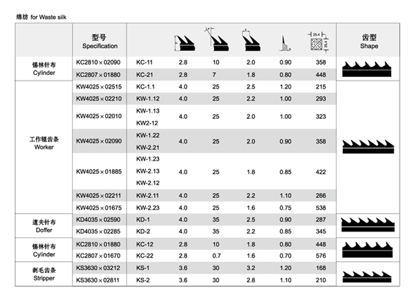 棉紡系列針布
