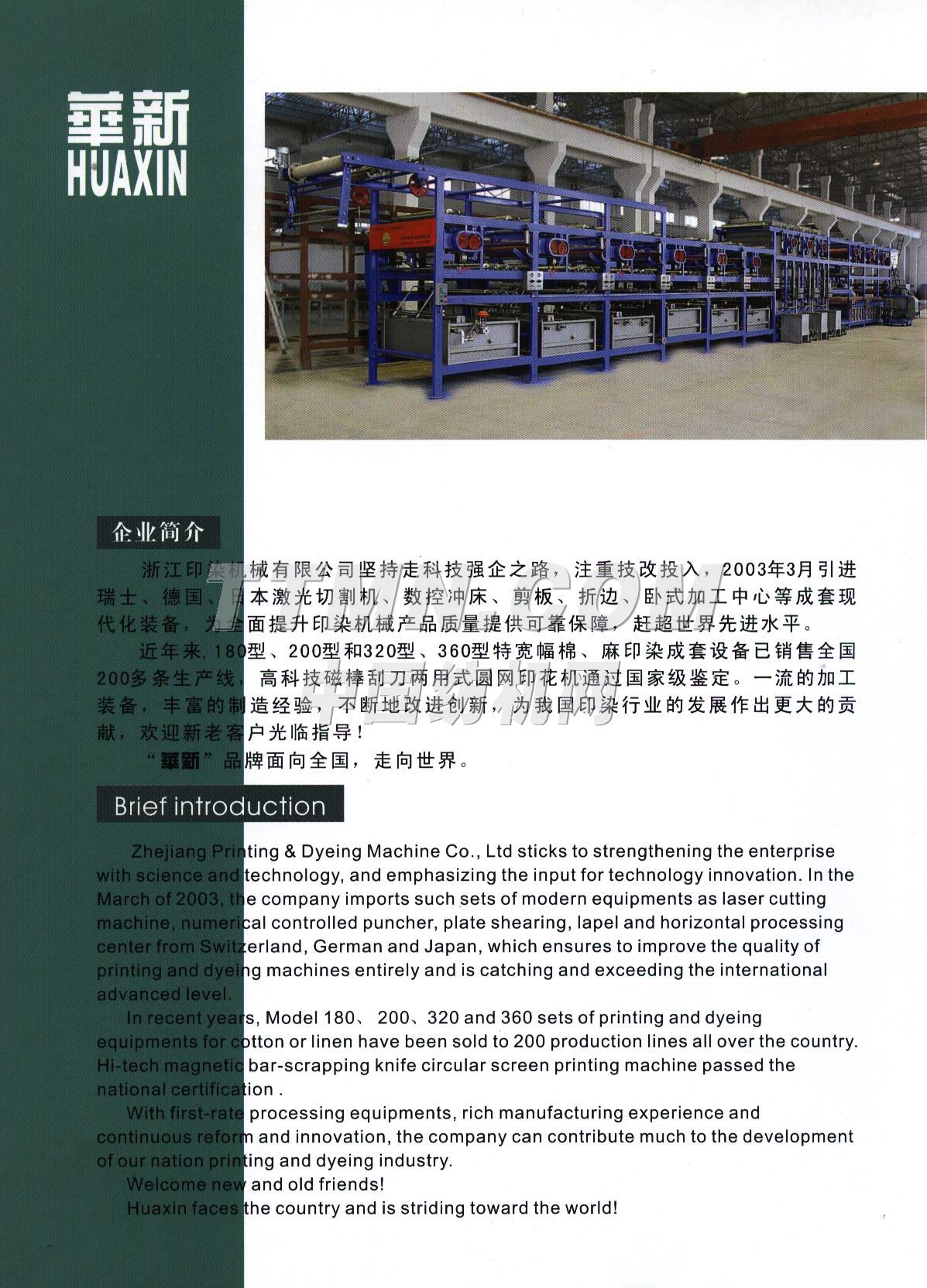 浙江印染機(jī)械有限公司地處浙江省新昌縣縣城,緊靠104國道線, 離杭州蕭山國際機(jī)場和寧波機(jī)場、寧波港口都在 1個小時范圍內(nèi), 交通便利,氣候宜人。 浙江印染機(jī)械有限公司創(chuàng)建于1976年,前身新昌印花機(jī)械廠, 80年代以生產(chǎn)印花機(jī)械而聞名各行業(yè)。2000年12月成為浙江省首批股份制試點(diǎn)企業(yè),注冊資金2500萬元。現(xiàn)有員工近1000人,其中大中專畢業(yè)生和專業(yè)技術(shù)人員占30%。2002年7月18日整體收購原江西9327兵工廠,現(xiàn)改名為江西利群紡織機(jī)械有限公司,為企業(yè)的更大發(fā)展奠定了良好基礎(chǔ)。總公司已形成集團(tuán)化經(jīng)營格局,下轄5家控股子公司。2007年3月,總公司將整體搬遷至省級高新技術(shù)產(chǎn)業(yè)園區(qū)內(nèi),占地近280畝的現(xiàn)代化新廠區(qū)。 浙江印染機(jī)械有限公司系浙江省"五個一批"重點(diǎn)骨干企業(yè)、浙江省首批誠信示范企業(yè)、浙江省現(xiàn)代企業(yè)制度試點(diǎn)企業(yè)、浙江省規(guī)范化股份制試點(diǎn)企業(yè)、浙江省最大經(jīng)營規(guī)模工