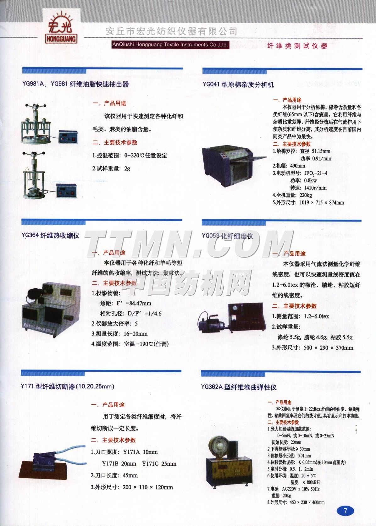 山東安丘市宏光紡織儀器有限公司是在原安丘市紡織儀器廠基礎上成立的,山東省高新技術企業具有機械、電子、光學、微機等綜合開發生產能力,年產各類紡織測試儀器四十多個品種兩千余臺,是我國紡織測試儀器主要生產基地之一。公司成立以來一貫堅持“求實創新,爭創一流”的企業精神,遵循“質量第一,用戶至上”的原則,推行“售前、售中、售后”一條龍服務,在用戶中樹立了良好的產品信譽和公司形象,宏光紡儀公司全體員工歡迎您的蒞臨指導。 ...