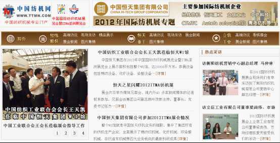 中國(guó)紡機(jī)網(wǎng)為恒天集團(tuán)制作《2012年國(guó)際紡機(jī)展專題》,針對(duì)集團(tuán)旗下18家子公司的參展情況、參展展品做全方位、立體的報(bào)道。專題通過高端訪談、現(xiàn)場(chǎng)采訪、展會(huì)新聞、精品展示和圖片集錦等內(nèi)容對(duì)恒天及其子公司做了細(xì)致、深入的分析報(bào)道。