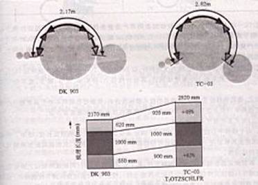 1.1.1、由于與TC-03一樣提高錫林中心距20公分,因此加長了梳棉機的梳理區(qū),梳理弧長由2。17米增加到2。82米,使梳理質(zhì)量優(yōu)異,可獲得最好的梳理效果,