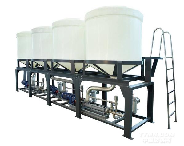 糊料準(zhǔn)備系統(tǒng)根據(jù)印花糊料的工藝要求,通過工控機(jī)和PLC控制,進(jìn)行自動(dòng)加水、自動(dòng)攪拌、管路過濾輸送及配料自動(dòng)稱量和粘度控制,以保證印花色漿調(diào)制的穩(wěn)定性和高效率。