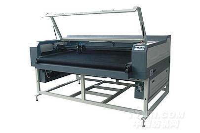 大幅面雙頭互移式切割機,其顯著特點是:兩個激光頭可根據圖形和面料的尺寸全自動分配切割方案,進行自動化切割,雙頭還可進行圖形鏡像加工,若配合送料機加工,則可以加工無限長的各種花邊圖形。