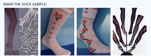 可產生平板襪、移圈襪、女士長筒襪??勺髅柯?色提花,加底色為5色,可做集圈、禁針花樣。