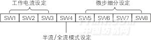 3DM683驅動器采用八位撥碼開關設定細分精度、動態電流和半流/全流。詳細描述如下: