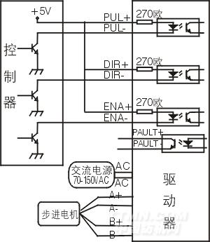 脈沖控制信號:脈沖上升沿有效;PUL-高電平時4-5V,低電平時0-0.5V。為了可靠響應脈沖信號,脈沖寬度應大于1.6μs。如采用+12V或+24V時需串電阻。