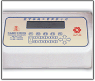程式直接由按鍵輸入,全部由數字代替,輸入快速簡易。LCD顯示程式行數、總行數、紗咀位置、循環狀態、三角動作、設定片數、完成片數、度目密度、織速、捲速、搖床、行數、自動偵錯、單件停車等。