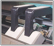 雙機頭,可合併成雙口;或分離成兩個單口系統,同時織兩片,或任意關閉其一系統來進行織造。
