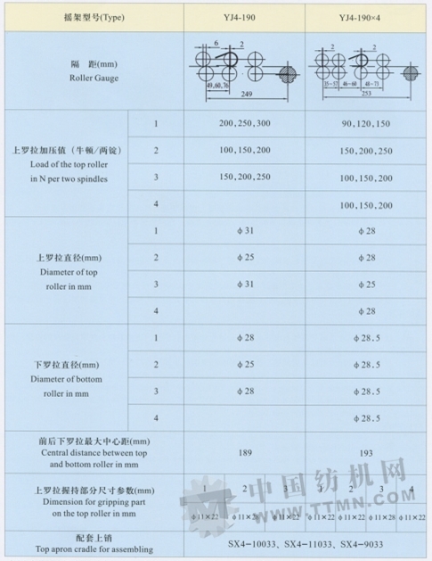 YJ4-190系列粗紗彈簧搖槊用于四羅拉雙皮圈牽伸型武的棉型粗紗機,適紡纖維長度為50毫米以下的棉化纖的純紡和混紡。