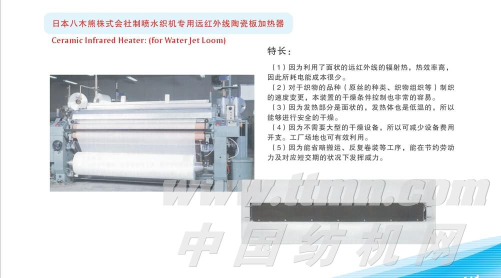 您所在的位置:紡機網 > 產品庫 > 日本八木熊株式會社制噴水織機專用遠紅外線陶瓷板加熱器